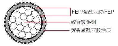 單芯聚全氟乙丙烯(FEP)/聚酰亞胺/聚全氟乙丙烯(FEP)膠帶絕緣M81381/12電纜應用于航空航天,此類線纜非常適合用在與排放黑煙及超負荷的穩(wěn)定性有關的應用程序。