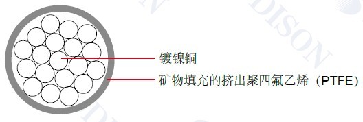 絕緣:礦物填充的擠出聚四氟乙烯(PTFE)